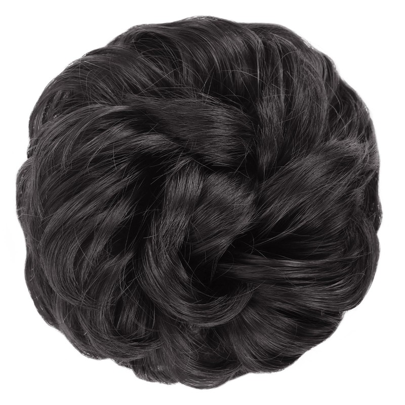 MORICA 1PCS Messy Hair Bun Hair Scrunchies Extension Curly Wavy Messy Bun Hair Synthetic Chignon Hairpieces for Women (2#(Natural Black))