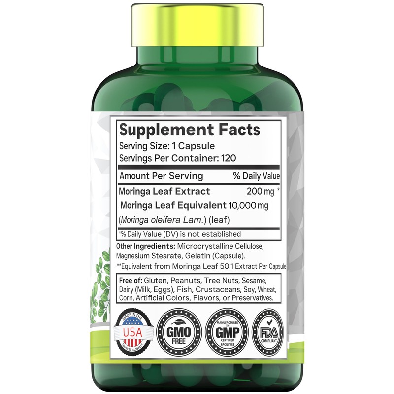 tnvitamins Moringa Capsules 10,000 mg - 120 Capsules | Pure Moringa Oleifera Leaf Powder Supplement | Powerful Green Superfood | Super Greens Powder Pills | Non-GMO, Made in The USA!
