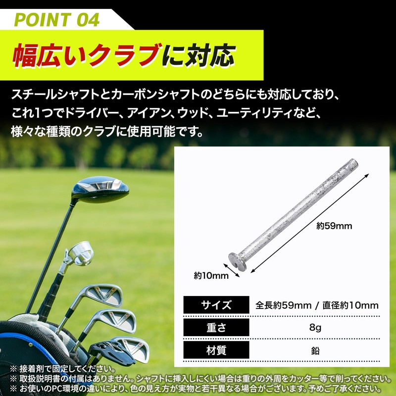 - 【シャフト内に挿入可能】鉛テープや鉛シートとは異なり、このウェイトはゴルフクラブのシャフト内に直接挿入するタイプ。見た目を損なわず、より一体感のあるバランス調整が可能な重りです。