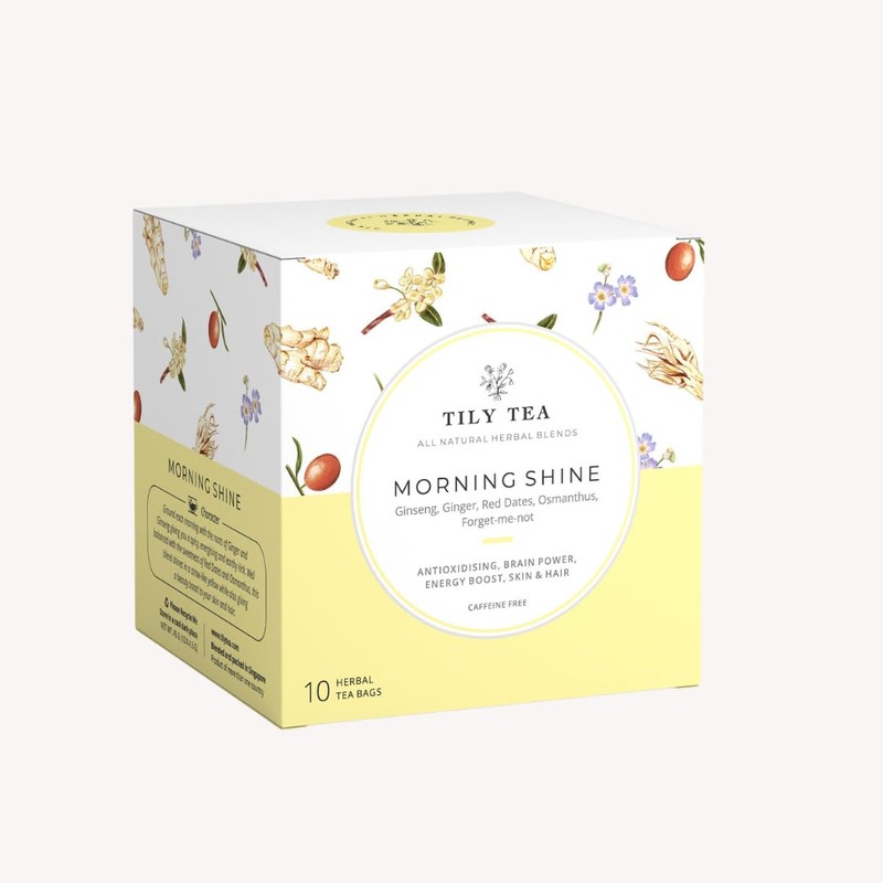 - CAFFEINE-FREE: An energising, sweet and spicy herbal blend of american ginseng, ginger, red dates, osmanthus and forget-me-not.