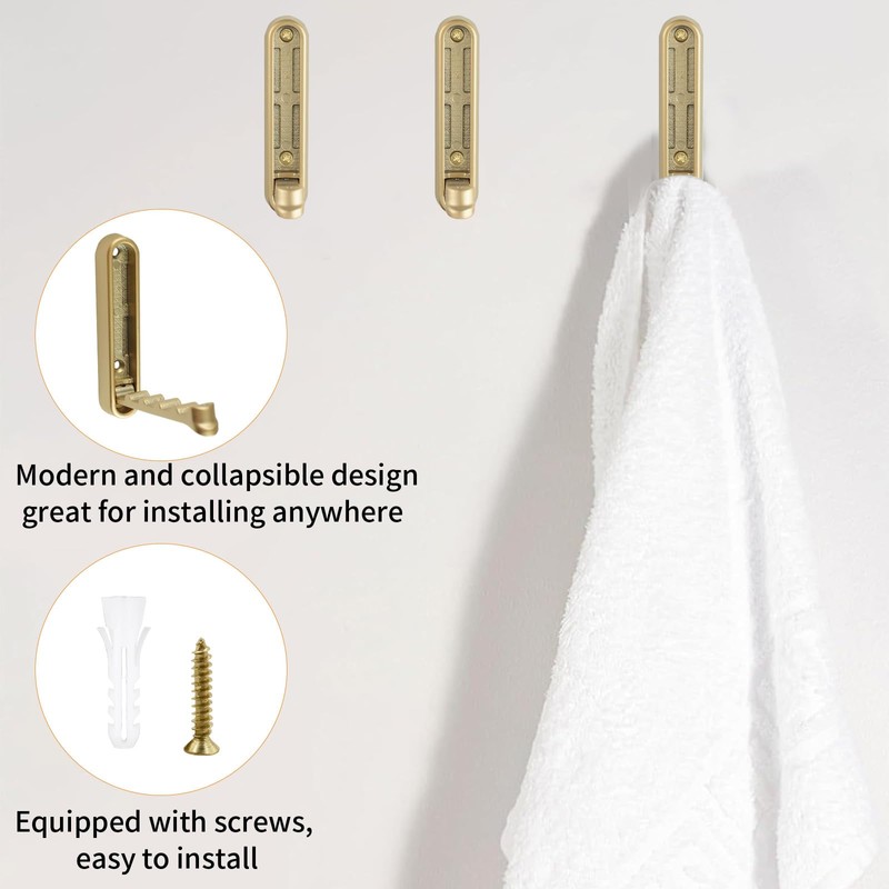 MOROBOR 2pcs Elliptical Folding Wall Hook, Aluminum Alloy Folding Invisible Hooks Non-Slip Heavy Duty Foldable Coat Hangers Retractable Support Rack for Hanging Towels Hats Bags/Gold