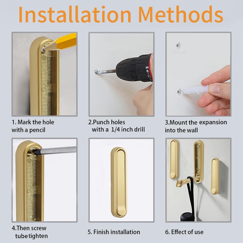 Designed with functionality and space-saving in mind, these versatile hooks ingeniously combine magnetic closure and screw-mounting for steadfast stability when closed.When unfolded, each hook gracefully transforms into a 90-degree right angle, providing ample hanging space while maintaining a sleek profile.