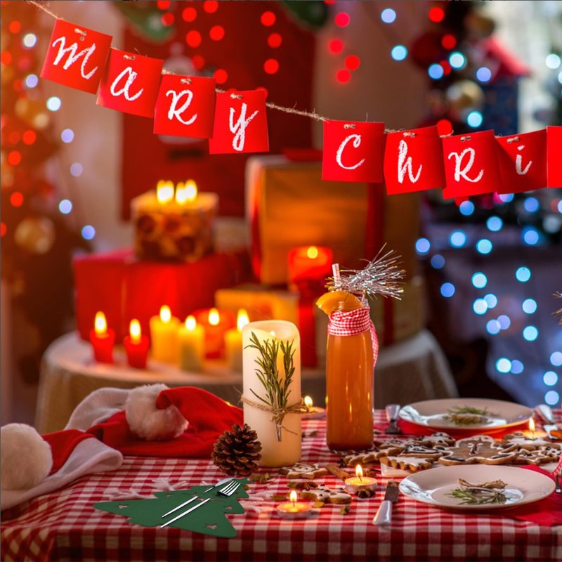 MOROBOR Christmas Cutlery Holder, 24pcs Christmas Silverware Holder Green Christmas Cutlery Bag Xmas Utensil Holder Cutlery Wraps Bag Christmas Party Dinner Table Supplies