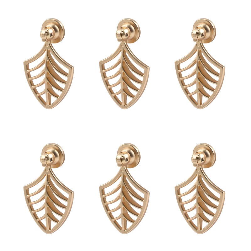 MOROBOR Leaf Shaped Knob Handles, 6 Pieces Gold Teardrop Pendant Hardware Drawer Pull Single Hole Handle for Wardrobe, Cupboard, Cupboards