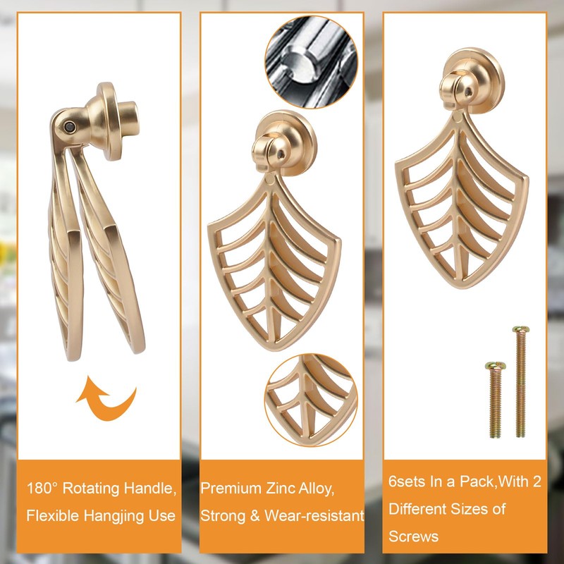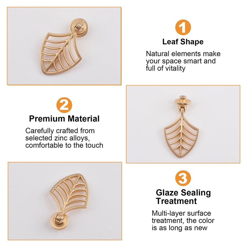 These leaf-shaped knob handles are made of zinc alloy, can be used for all kinds of decoration styles and are easy to install.