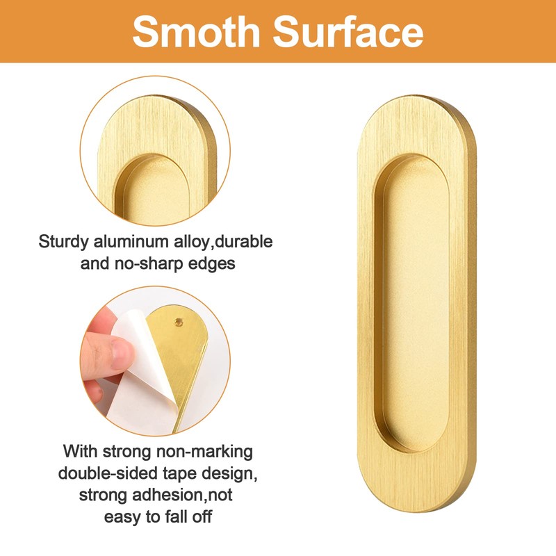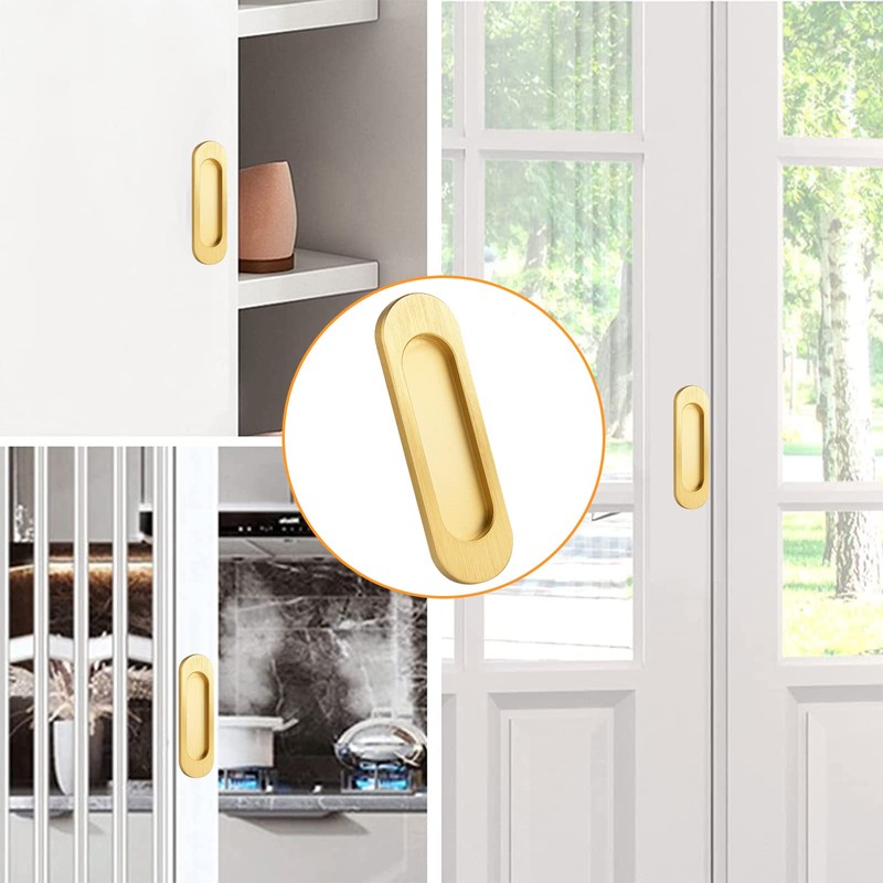 - 【Modern Style】: This oval recessed sliding door handle features modern design, Brushed gold and clever recessed design, making it blend well with other modern furniture in your home, bringing an urban vibe to your space
