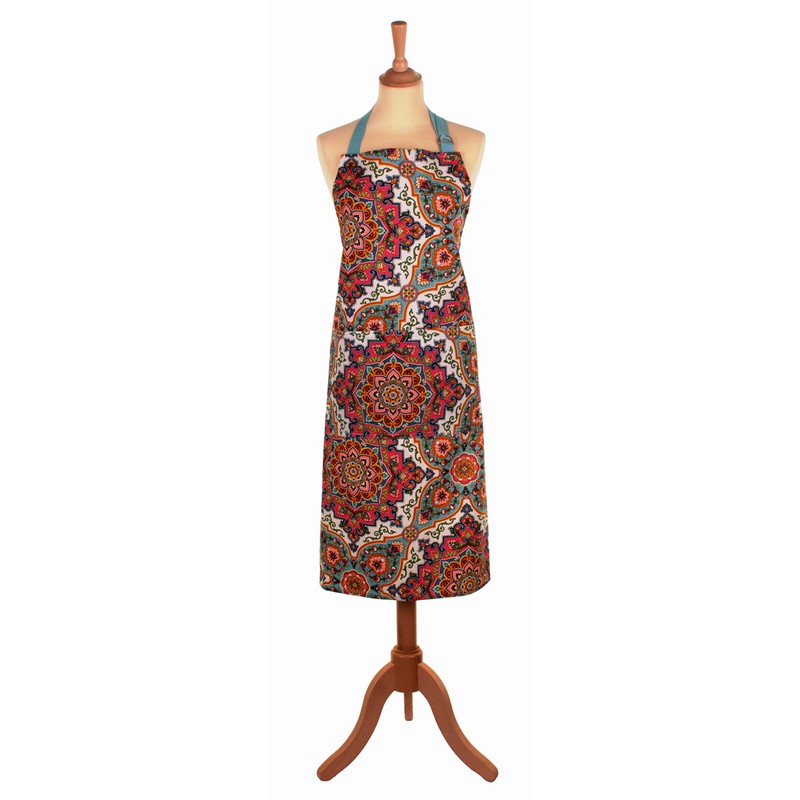 This bright and colourful moroccan inspired cotton apron will add a touch of bohemian chic to any kitchen. The apron depicts vibrant colours with contrasting neck and waist ties as well with a front pocket. A full range of kitchen textiles are available in the Moroccan Tiles collection.