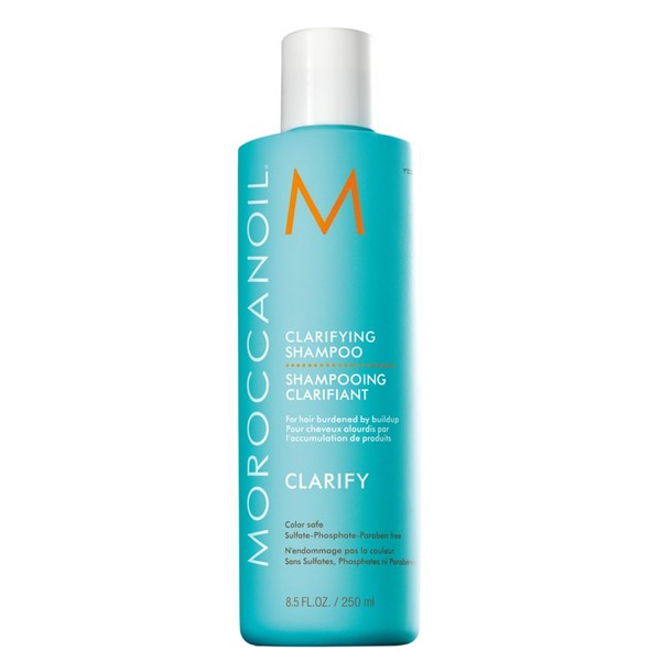 Product Description Moroccanoil Clarifying Shampoo works to remove buildupfrom hair products, chlorine, environmental impurities, hard water and mineral depositsthat can make hair limp, lifeless or greasy. This deep-cleansing formula lifts away daily buildup and impurities, while keratin, argan and avocado oils, lavender, chamomile and jojoba extracts provide nourishment. Hair is restored to a healthy balance with a weightless feel. Can be used twice monthly as part of a normal hair care regimen, or up to once a week for those who swim regularly, have hard water or use a lot of hair products. Fragranced with the signature Moroccanoil scent, an exotic blend of spicy amber aromas and sweet floral notes. Brand Story A story of success, an impulse for innovation and a relentless pursuit of high-performing oil-infused beauty products fashioned an iconic brand: Moroccanoil.