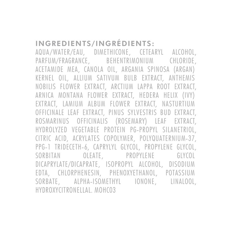 - Argan oil, red algae, and vitamins A and E increase manageability and shine
