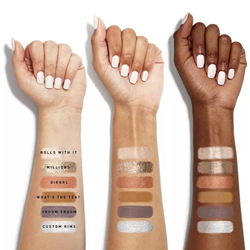 • ROW 4: Rolls With It / shimmering cool gold Millions / golden glitter Girrrl / shimmering copper What’s the Tea? / matte ochre Vroom Vroom / matte slate gray Custom Rims / shimmering polished silver