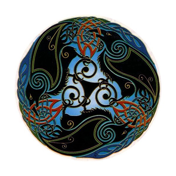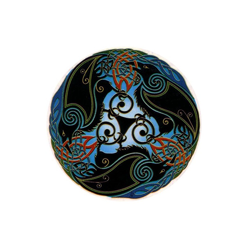 Morrigan Celtic Ravens - Window Sticker/Decal (4.5" X 4.5") Circular Translucent