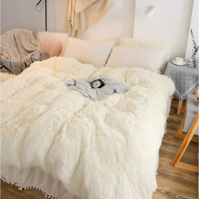 😄If you are looking for a chic and comfortable bedding as a gift. 😜If you are looking for a cosy bedding. 😊If you are looking for a pleasing and healty bedding into your room. 😁We believe that our luxury plush shaggy fur duvet cover set is your best choice. **Wash Method:** 1.Regarding washing temperature: at 104℉ or below 104℉, medium temperature. 2.Use neutral detergent. Wash dark color beeding separately. 3.Do not bleach. Do not soak for a long time. 4.Gentle cycle, please hang dry or tumble dry low, remove promptly, do not iron. 5.Do not put liquid laundry detergents on the bedding directly, should dissolve it in the water first. **Warm Tips:** 1.Please kindly check the size before you buy it. 2.Please allow 1-3cm measuring deviation due to manual measurement. 3.THE REAL MERCHANDISE YOU WILL RECEIVE MIGHT BE SLIGHTLY DIFFERENT WITH THE PHOTO PRESENTED DESIGN due to the display and pixels. 4.Could Not Accept Returns Once The Set Has Been Used or Washed. Please Notice That. **Guarantee:** Your shopping experience is very important to us. Any question or problem in the shopping process, please do not hesitate to contact us, we will give you a satisfactory solution. Product zero flaw and 100% satisfied service is our unremitting pursue. We are sincerely looking forward to your advisory or feedback. **Thanks for choosing us!**