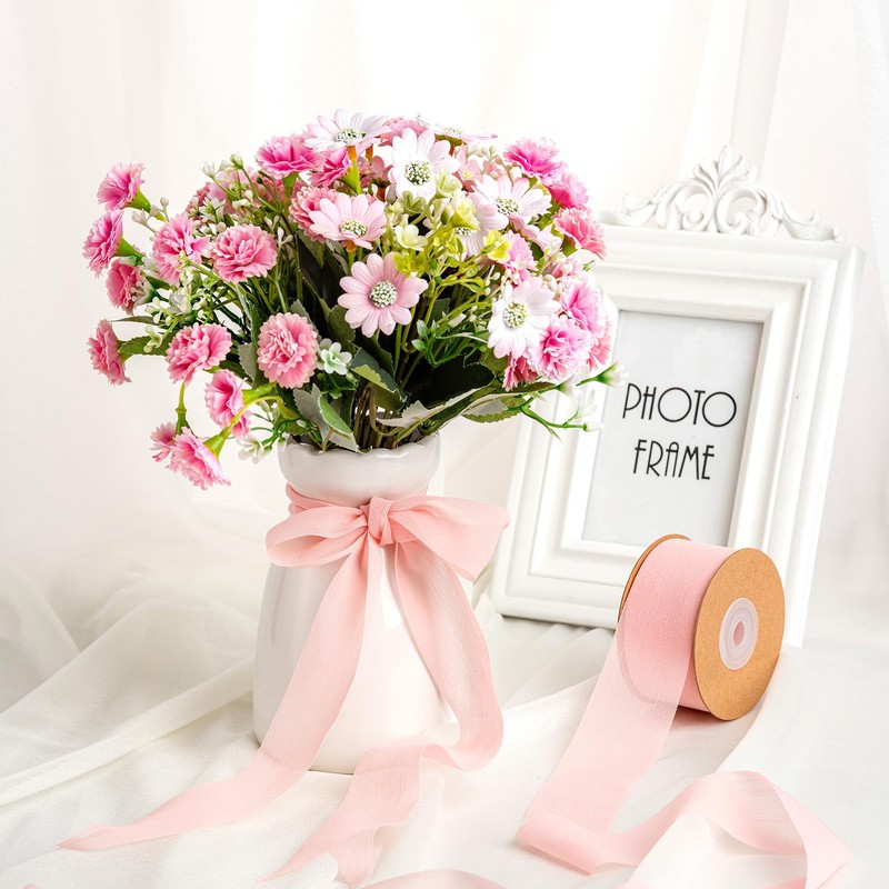 - Ribbon Chiffon Application: Wrapping Ribbon can be matched with various crafts, wedding invitations, bouquet packaging, hair accessories, DIY bows, and is also suitable for gift packaging, table decoration, cake decoration, card decoration, etc