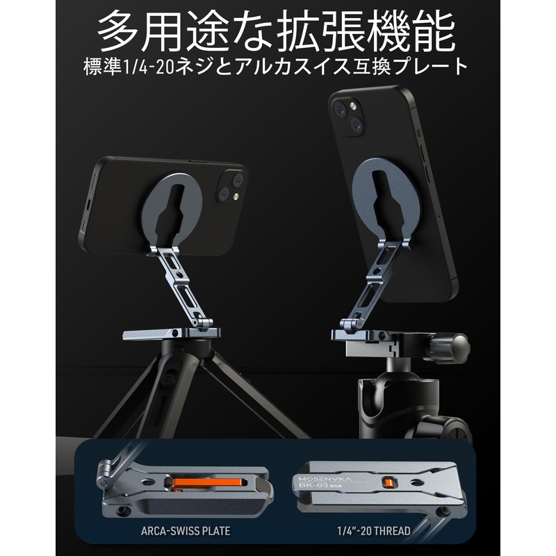 MOSENVKA (BK03-Air Smartphone Tripod, Mini Tabletop Smartphone Holder, Magsafe Compatible, Tripod Mount, Foldable, Multifunctional Smartphone Stand, Lightweight, Aluminum Alloy, Magnetic Mount, 360