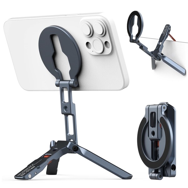 - 【N52 Strong Magnetic Ring for Instant Installation】Portable magnetic tripod with built-in N52 grade strong magnets, realizing super strong magnetic connection. Quickly attach and detach iPhone 12/13/14/15/16 series. Perfect for MagSafe compatible iPhone and MagSafe compatible case, it provides stable support for hands-free browsing, video calls and photography
