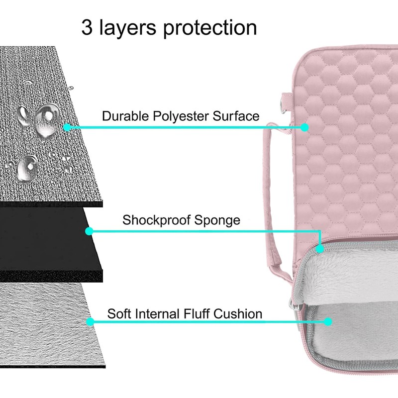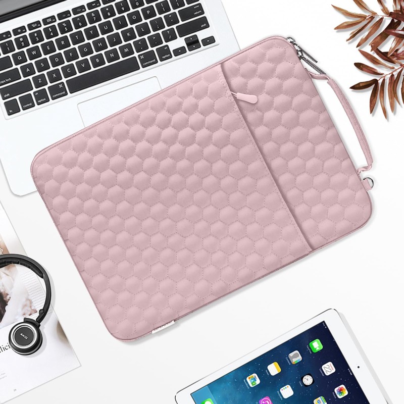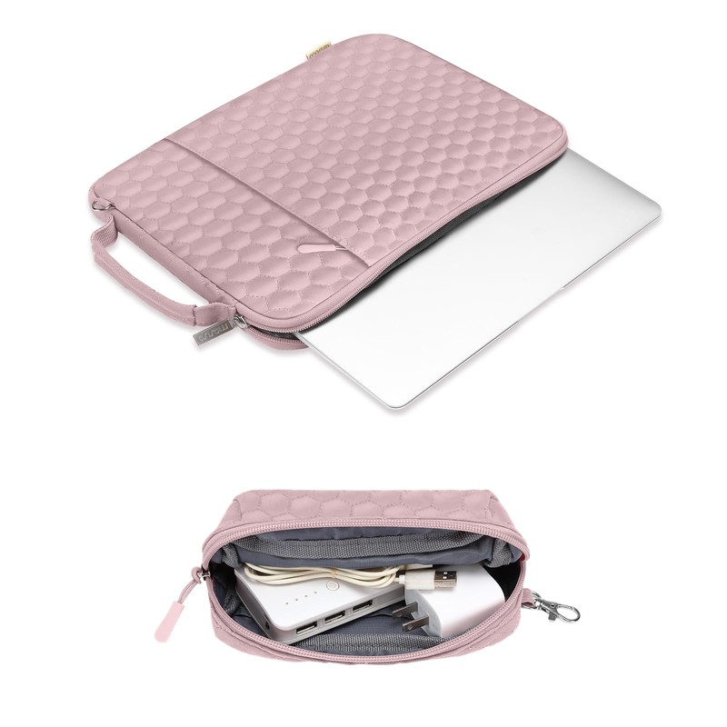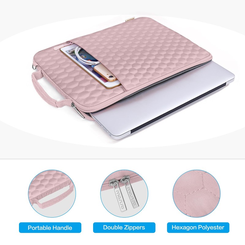 - Fabricado con material de poliéster hexagonal, una cremallera de apertura superior se desliza suavemente y permite un acceso conveniente a su dispositivo. El diseño de asa lateral portátil, delgado y liviano, no aumenta el volumen de su dispositivo y puede deslizarse fácilmente en su maletín, mochila u otra bolsa.