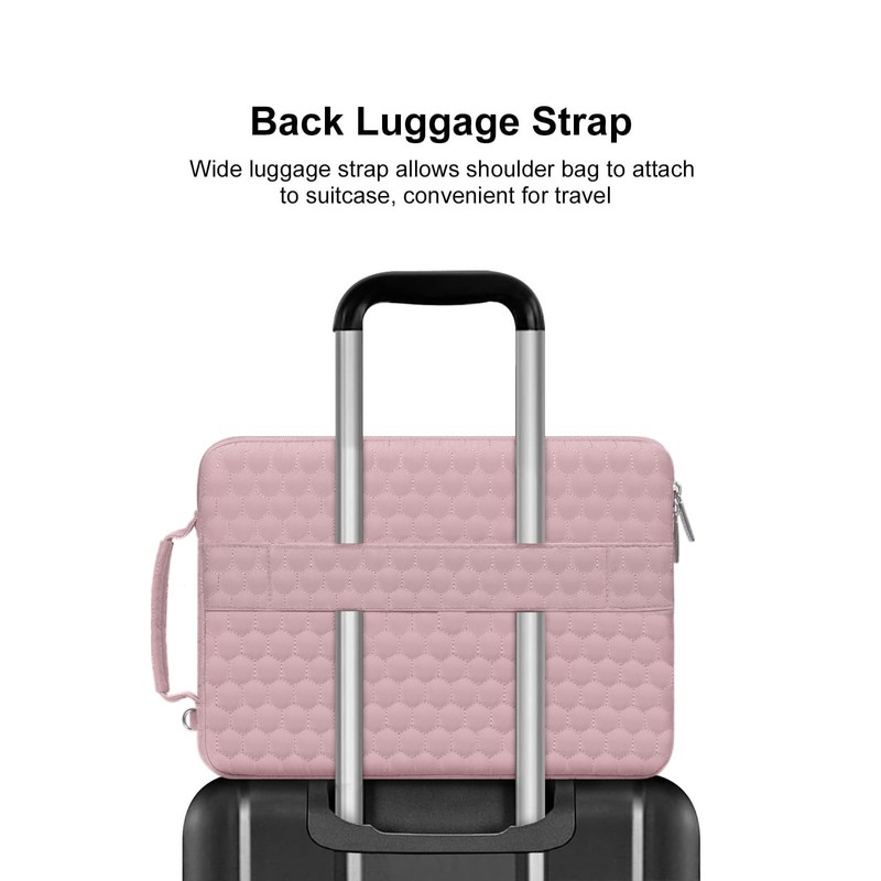 - El diseño considerado es el cinturón trasero para maleta con ruedas para facilitar su uso durante un viaje de negocios. Es realmente conveniente para su feliz viaje a cualquier lugar. Bolsa de almacenamiento pequeña adicional para guardar el mouse y los auriculares de la computadora portátil. Mismo color que el bolso de manga grande, armonía y estilo.