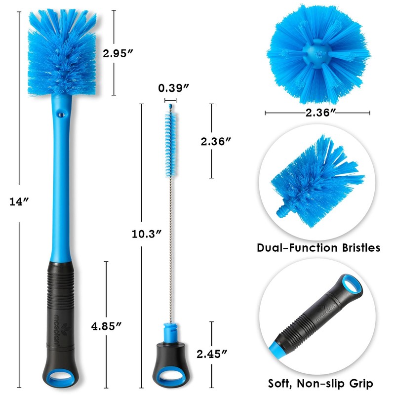 MOSOLAN 2-in-1 Bottle Brush with Twist N' Hide Straw Brush, Water Bottle Brush Cleaner with Removable Head, Built for Cleaning Water Bottles, Coffee Mugs, Wine Decanters, Glasswares, Flask, 2 Pack