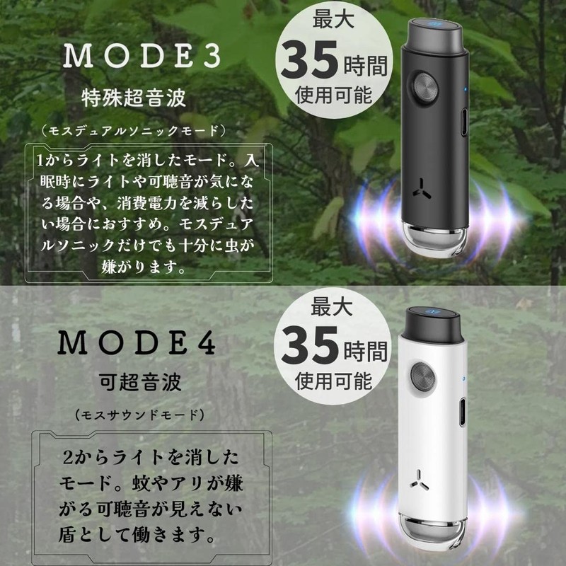 - (2 types of special ultrasonic waves hate insects) Emits a special ultrasonic wave that is disliked by a unique developed pests. Ultrasonic waves radiate at random intervals of 0-0.5 seconds to prevent insects from getting used to sound. Plus powerful sound pressure of over 80db According to our in-house research, we found that the ratio of the repellent is reduced when less than 60 dB, so we further strengthen the ultrasonic wave that insects dislike. By continuing high sound pressure, we achieved maximum effectiveness and maximum repellency