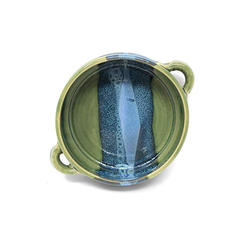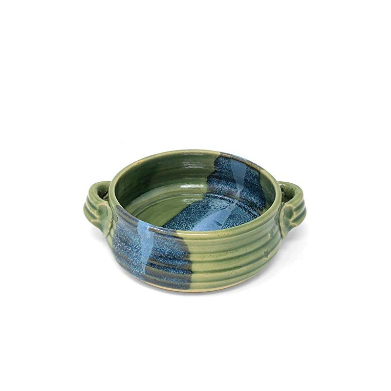 - Handcrafted stoneware baking dish with handles, perfect for brie or hot dips