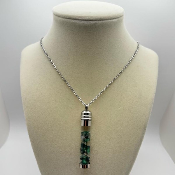**Introducing The Ridge Moss Agate Moon Water Necklace**— a captivating jewelry piece that channels the powerful energies of the Beaver Moon, harnessing the extraordinary essence of Super Moon water and charged moss agate crystals. Lovingly handcrafted, this unique necklace is designed to attract prosperity, promote stability, and manifest your heart's desires.