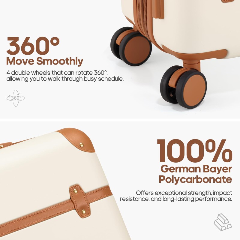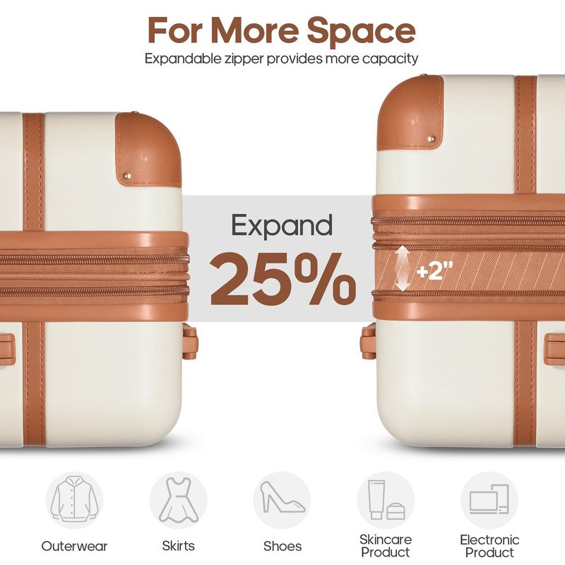 - Expandable Luggage Set : The carry on suitcase with backpack has practical expandable features, which can increase storage space by 25% when needed, and can easily meet your needs. The matching backpack and toiletry bag are unified with the overall style, highlighting the retro fashion temperament, so that every trip is full of style.