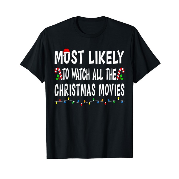 Most Likely To Watch All Christmas Movies Family Xmas Funny T-Shirt