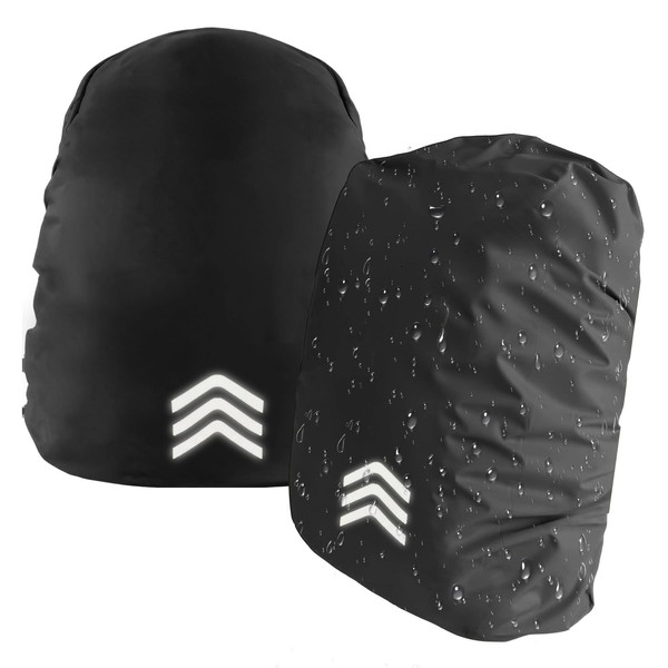 MOSTFUN 2 Pack Waterproof and Reflective Backpack Cover, High Visibility Dustproof Rucksack Protection for Hiking, Camping, Traveling, and Cycling (Black, S)