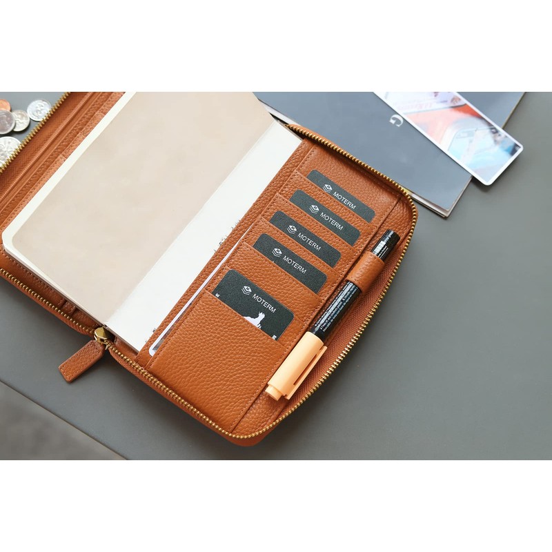 Moterm Zippered Leather Cover for Weeks - Fits Hobonichi Weeks and Weeks Mega Notebook Planners (Pebbled-Burnt Orange)