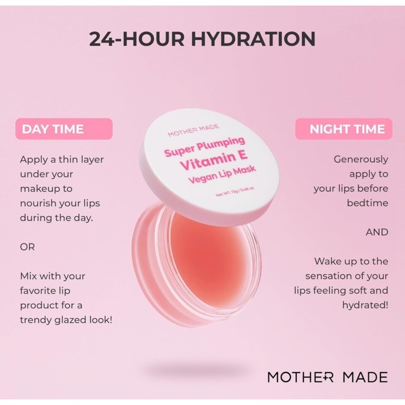MOTHER MADE Natural Plumping Vitamin E Lip Mask, 0.46 Oz | Hydrating Lip Moisturizer For Soft, Smooth, Plump Lips, With Organic Shea Butter, Vegan Waxes, Collagen Boosters, Korean Skincare, Lip Gloss