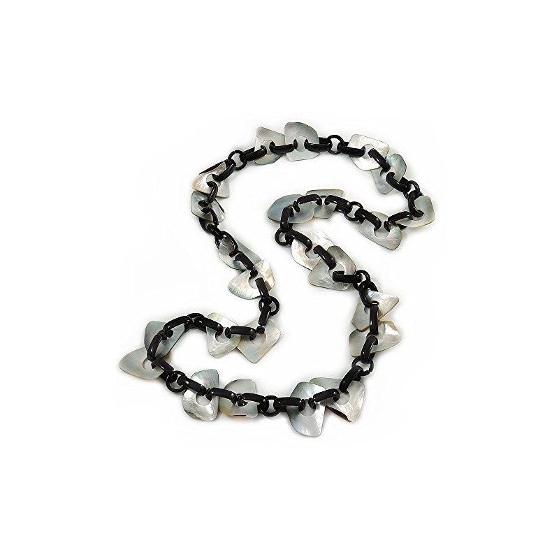 Mother Of Pearl Elements with Black Oval Resin Rings Long Statement Necklace/104cm L