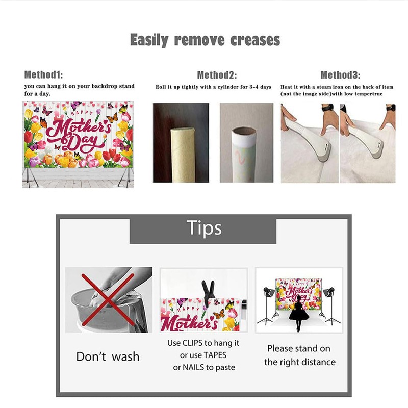 - PREMIUM MATERIAL: Mothers day photo backdrop is made of high-quality material (polyester fabric), which can be reused many times. This mothers day photo backdrop is good for capturing photos of your family, mother. It is the great choice for mothers day photo background