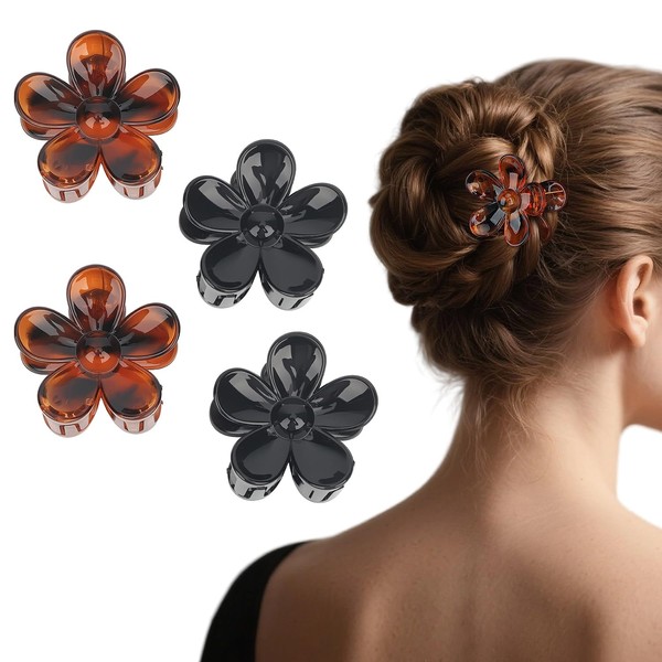 MOTIBACK 4PCS Flower Hair Claw Clips for Women, Hibiscus & Plumeria Hair Clips, Medium Sunflower Hair Clips, Strong Hold Non-Slip Tortoise Shell Claw Clip (4cm, 4 Pieces)