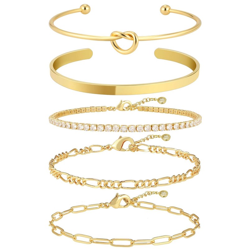 - Elevate Your Everyday Style: Unleash your creativity by mixing and matching the five designs to build a personalised gold bracelet stack. From dainty heart knots to bold paper clip links, each piece in this gold bracelet set offers unique textures, perfect for trendsetters who love experimenting with layered styles.