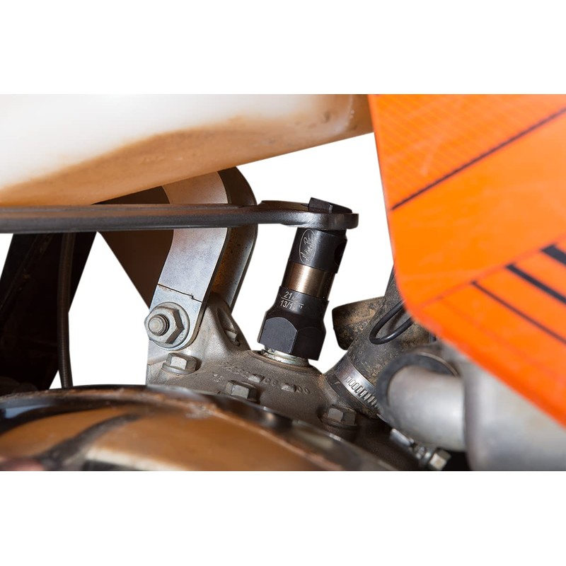 Fits 16mm and 5/8in. spark plugs Ultra-strong tool steel construction Slim skeleton profile Use with a 3/8in. square drive or 17 mm wrench Innovative internal plug retention system Protective black oxide coating Easy to read laser etched markings Can be used as an axle holding tool on bikes with 17 mm or 19 mm internal hex axles Through hole allows use of screwdriver or holding rod Light weight Patent pending