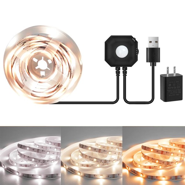 Motion Sensor Light Indoor, Wefomey Motion Activated LED Light Strip with Dimmer Switch and Timer, 2700K-6500K Tunable White Light Strip for Closets, Kitchen Under Cabinet - Daylight Warm White