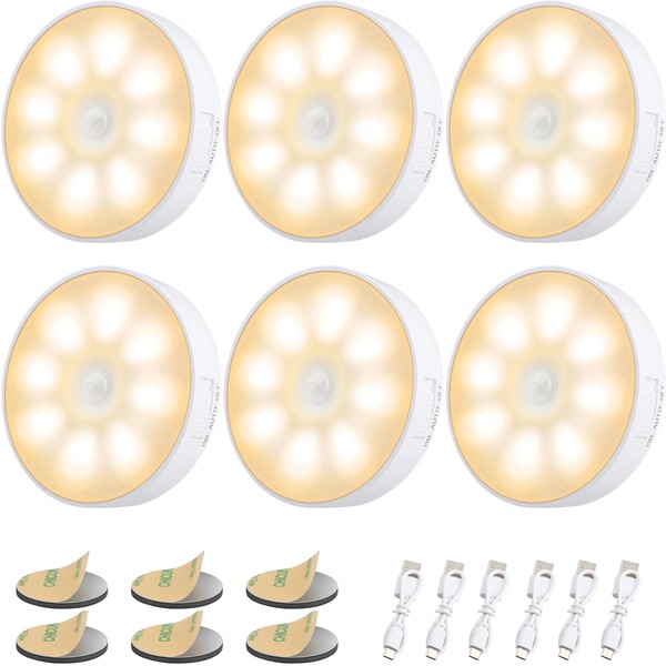 Motion Sensor Lights Indoor, [Upgraded][8 LEDs] Electight Stick on Stair Puck Lights, Cordless Step Safe Lights, 3 Modes, for Under Cabinet, Bedroom, Bathroom, Hallway, Kitchen - 6 Pack Warm White