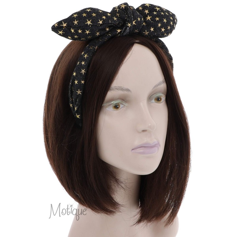 - QUALITY CONSTRUCTION This headband features a puffy knotted bow fabric headband with gold stars, with teeth to keep the band securely and comfortably in place.