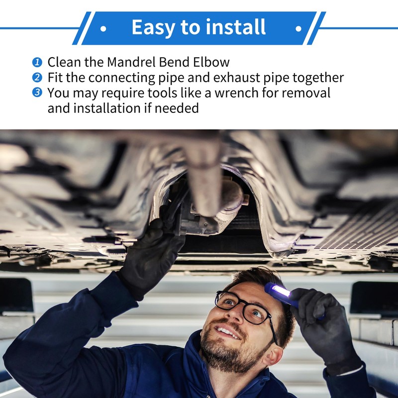 - Easy to install: 1.Clean the Mandrel Bend Elbow 2. Fit the connecting pipe and exhaust pipe together 3. You may require tools like a wrench for removal and installation if needed