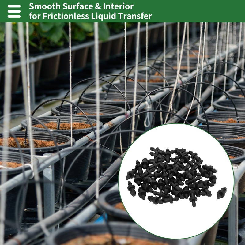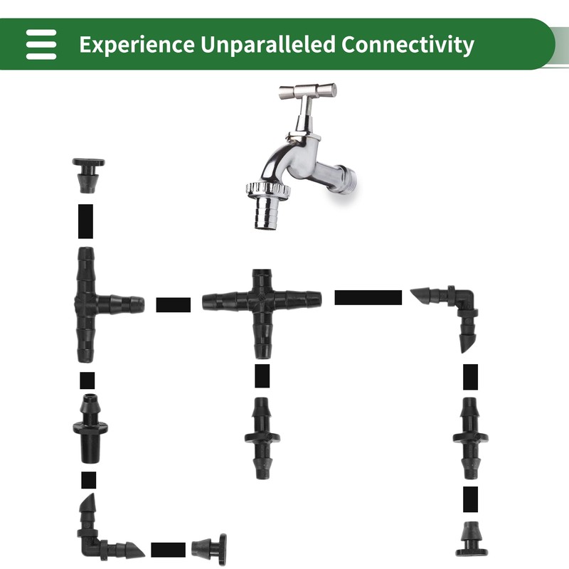 - Installation Guide:Just push the tubing firmly over the barbs for a tight fit, they don' t need others tools. Please put these drip irrigation accessories in 70-80° water for 10 seconds before assembly, the tube will remain tight after cooling.