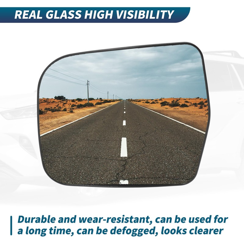 - [Real Glass] This Side Mirror glass Replacement is made of better quality glass and ABS for clearer visibility.