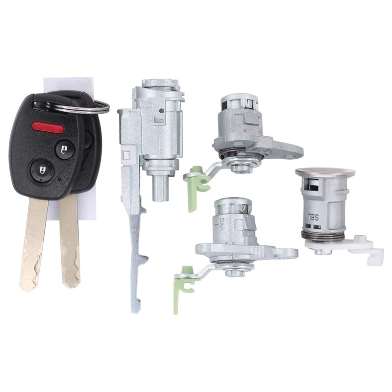 MOTOKU Ignition Switch Cylinder Door Lock Cylinder Kit w/Remote Key Shell for Honda Fit 2004-2011