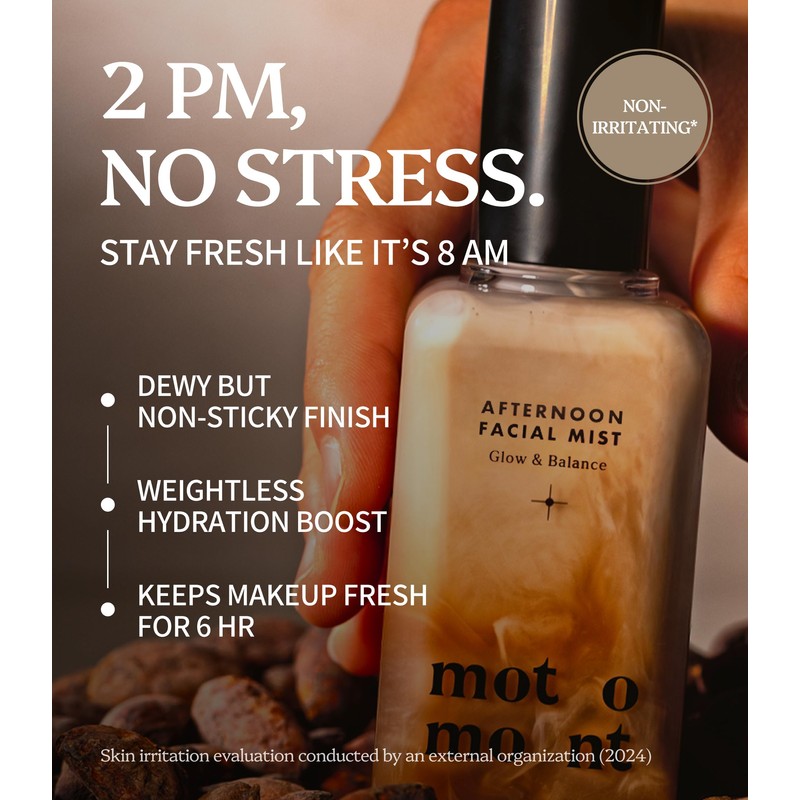 Motomont Milk Tea Spray Serum is a product designed to provide comfort to the skin and refresh the moment. It helps to maintain makeup for up to 6 hours, while adding a radiant glow for a healthy, dewy complexion. Infused with Cacao Extract and Blue Complex Extract, it also offers protection against fine dust by preventing its adhesion to the skin. The spray serumt's Milk Tea fragrance brings an instant sense of refreshment, elevating your skincare experience.