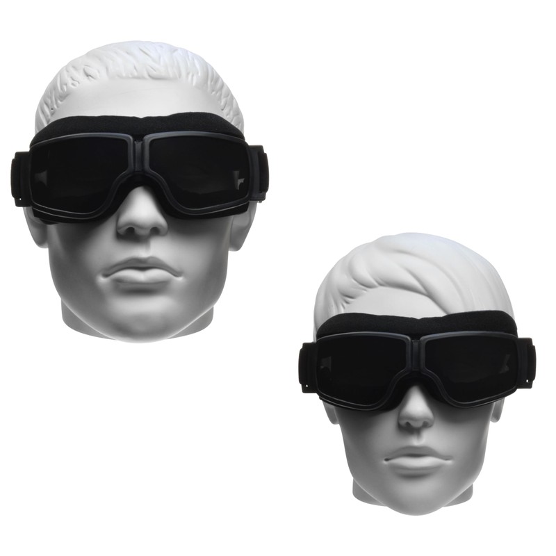 Newly designed over glasses goggles cover over prescription glasses so you can ride your motorcycle or enjoy your sports activities without switching your glasses. Your RX glasses will fit snugly within the goggle without pushing the glasses onto your face. They are equipped with airy soft and thick dual layer foam cushions which seal out wind, dust and debris completely. Wide adjustable strap with convenient "catch" snap in the back secure wiggle free fit. Air vents along top and bottom of frame allow minimal airflow to prevent fogging. The Bagger fits glasses which measure 145 mm or less from left temple to right temple and height 52 mm. Free extra large microfiber cleaning case included for each pair. Free extra large microfiber cleaning case included for each pair.