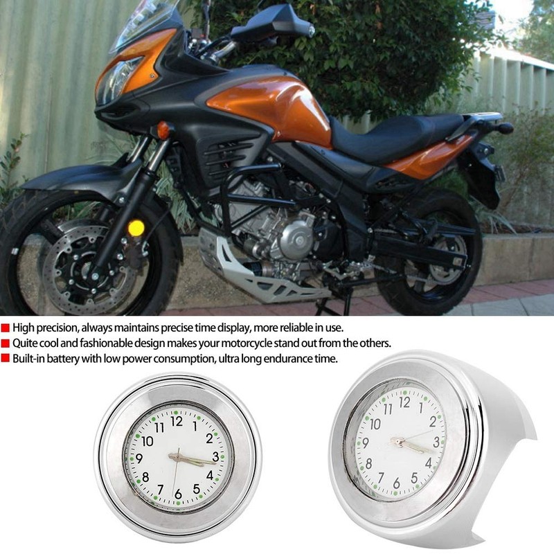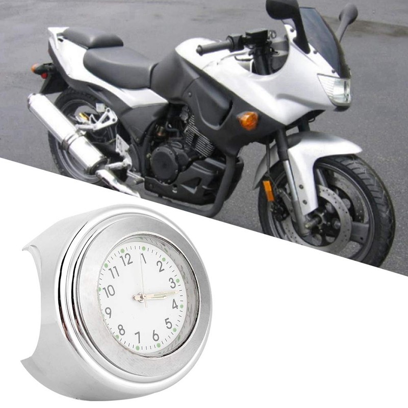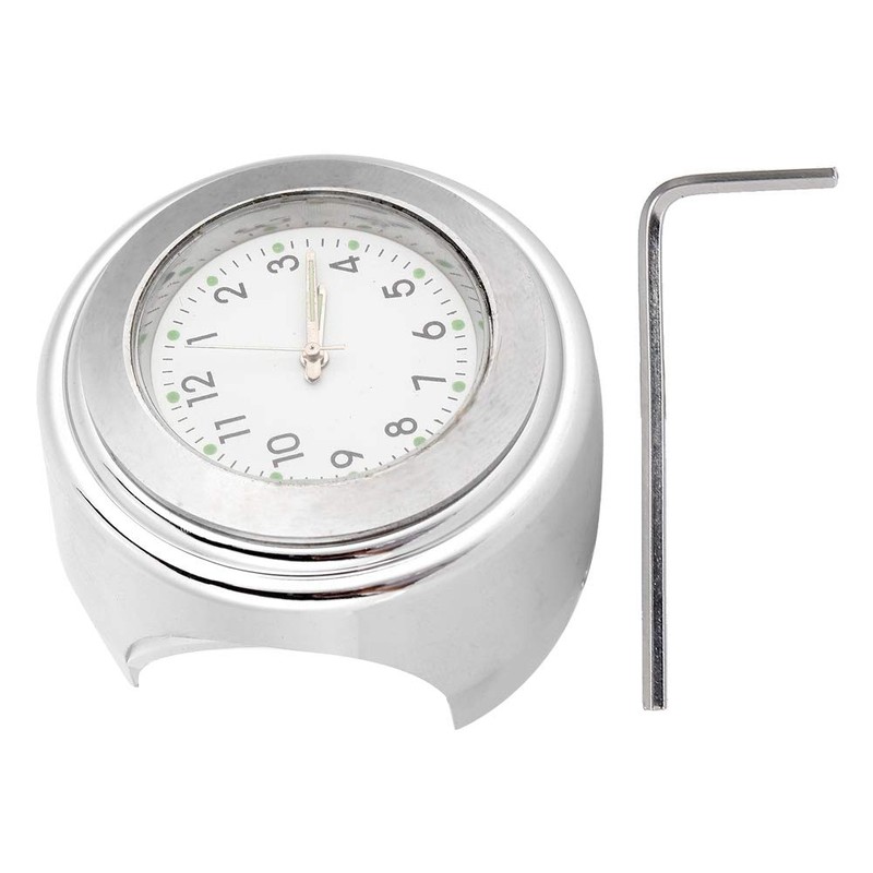 Motorcycle Clock, 22-25mm Universal Motorcycle Handlebar Clock Metal Mount Hand Grip Bar Dial Watch (Silver