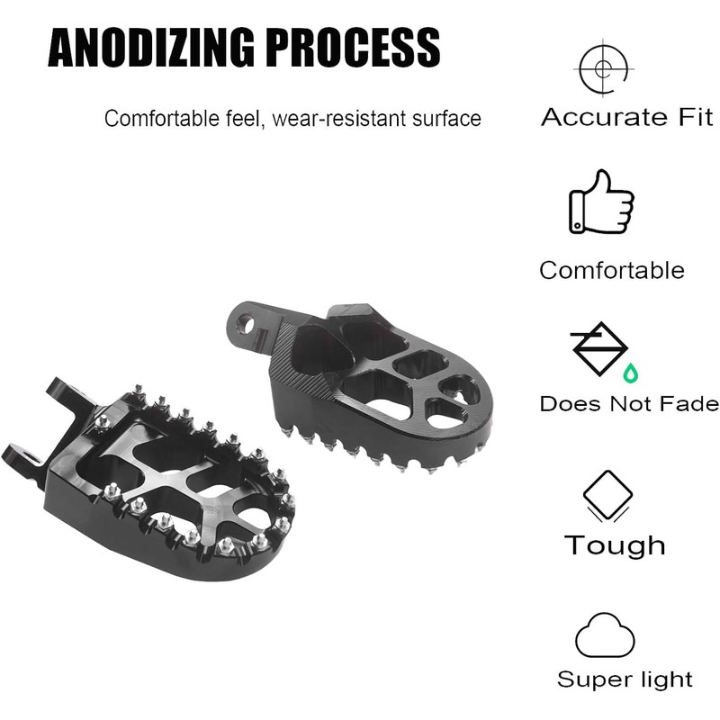 This Foot pegs are wider and larger than the original dirt bike foot pegs to provide better friction and control, allowing your feet to stay in place without sliding