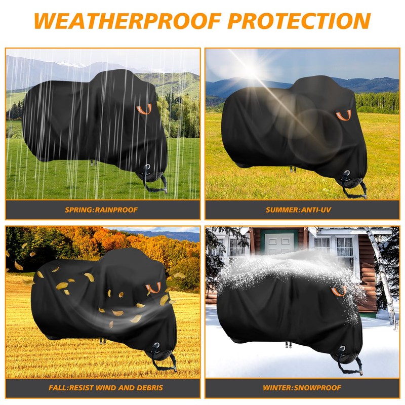 - Practical Materials: This cover made of durable polyester fabric with silver coating,which is waterproof, uv-resistant and durability,dustproof,easy to clean,A cost-effective fabric adequate all-weather basic protection for outdoor and garage