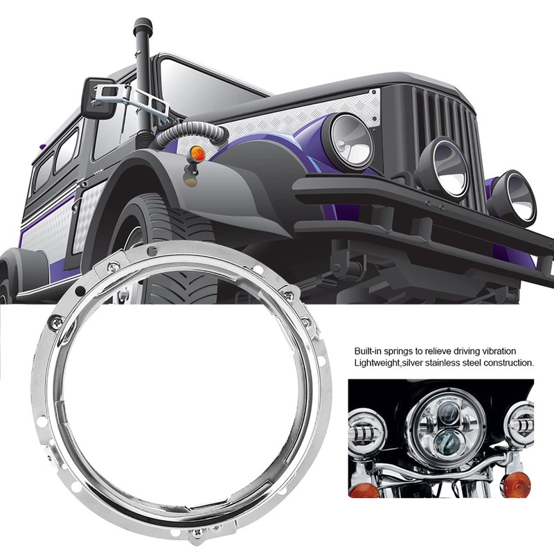 Motorcycle Headlight Round Ring Mounting Bracket, 7 Inch Car Headlight Round Ring Mount for (Silver)