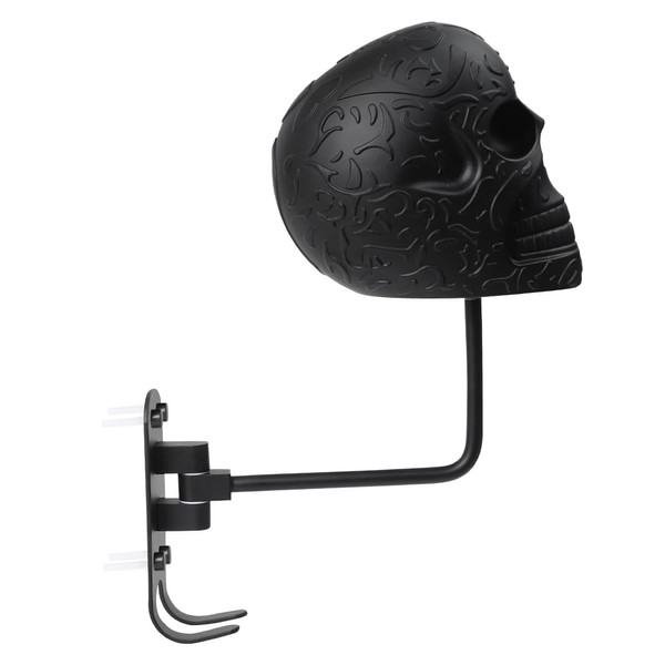 - DESIGN FEATURES: Striking skull-shaped motorcycle helmet holder with an integrated coat hook, perfect for showcasing your helmet whilst saving space