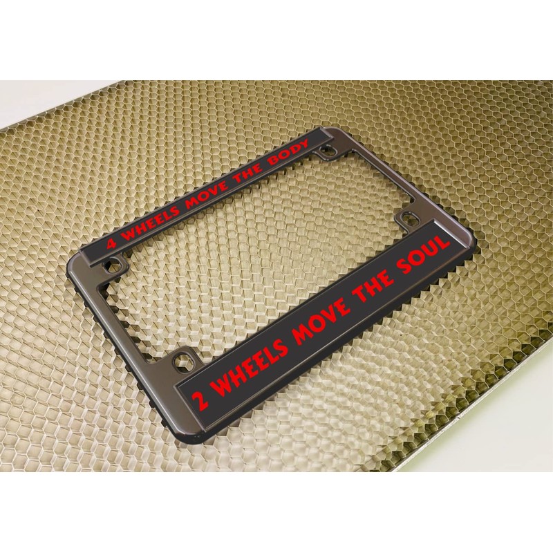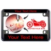 Motorcycle Personalized Metal (Zinc) Laser Engraved Standard Size License Plate Frame with Custom Text Design - Gunmetal Finish - Black/Red Text